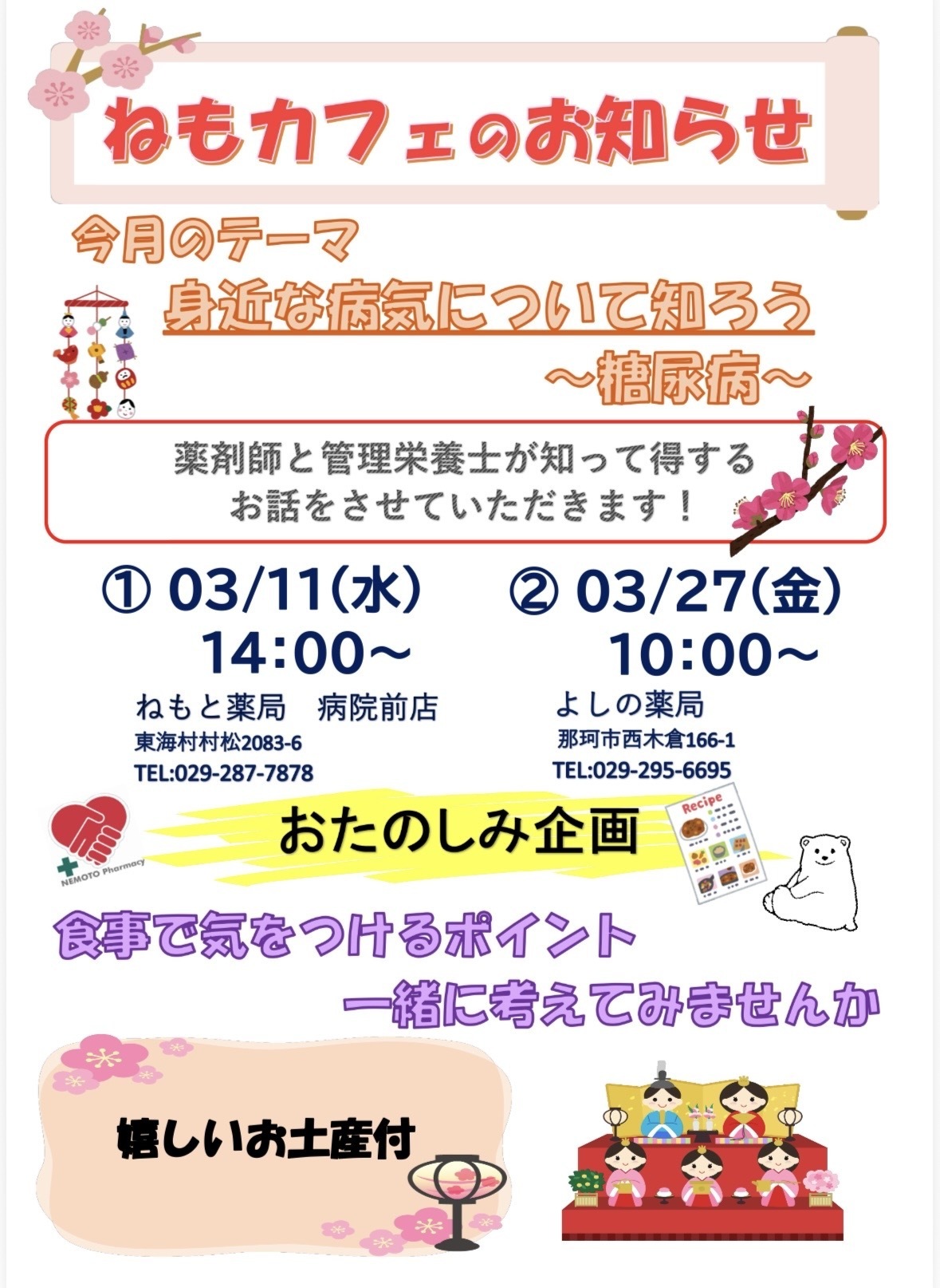 | ねもと薬局病院前店 | 第2週水曜日14:00〜15:00